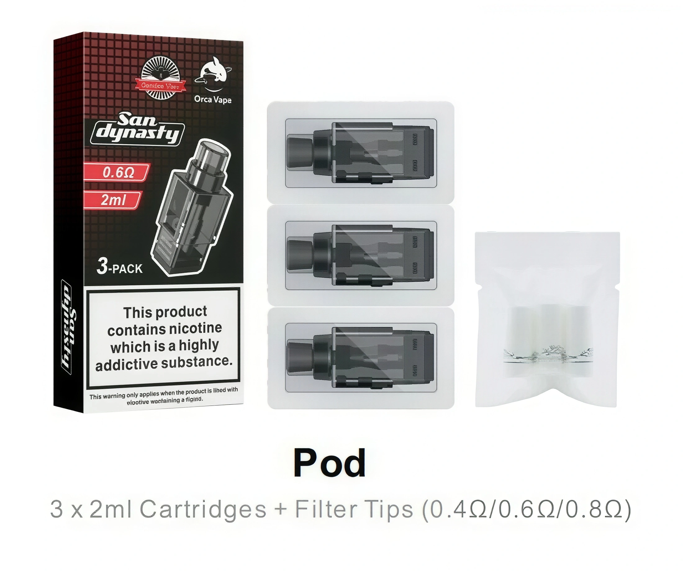 • ✅ 2ml 全阻值空倉兼容(0.4Ω / 0.6Ω / 0.8Ω)